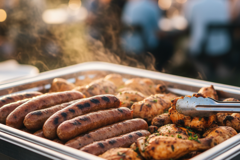Frisch gegrillte Spezialitäten, saftige Steaks und passende Beilagen sorgen für echtes BBQ-Feeling auf Ihrem Event.